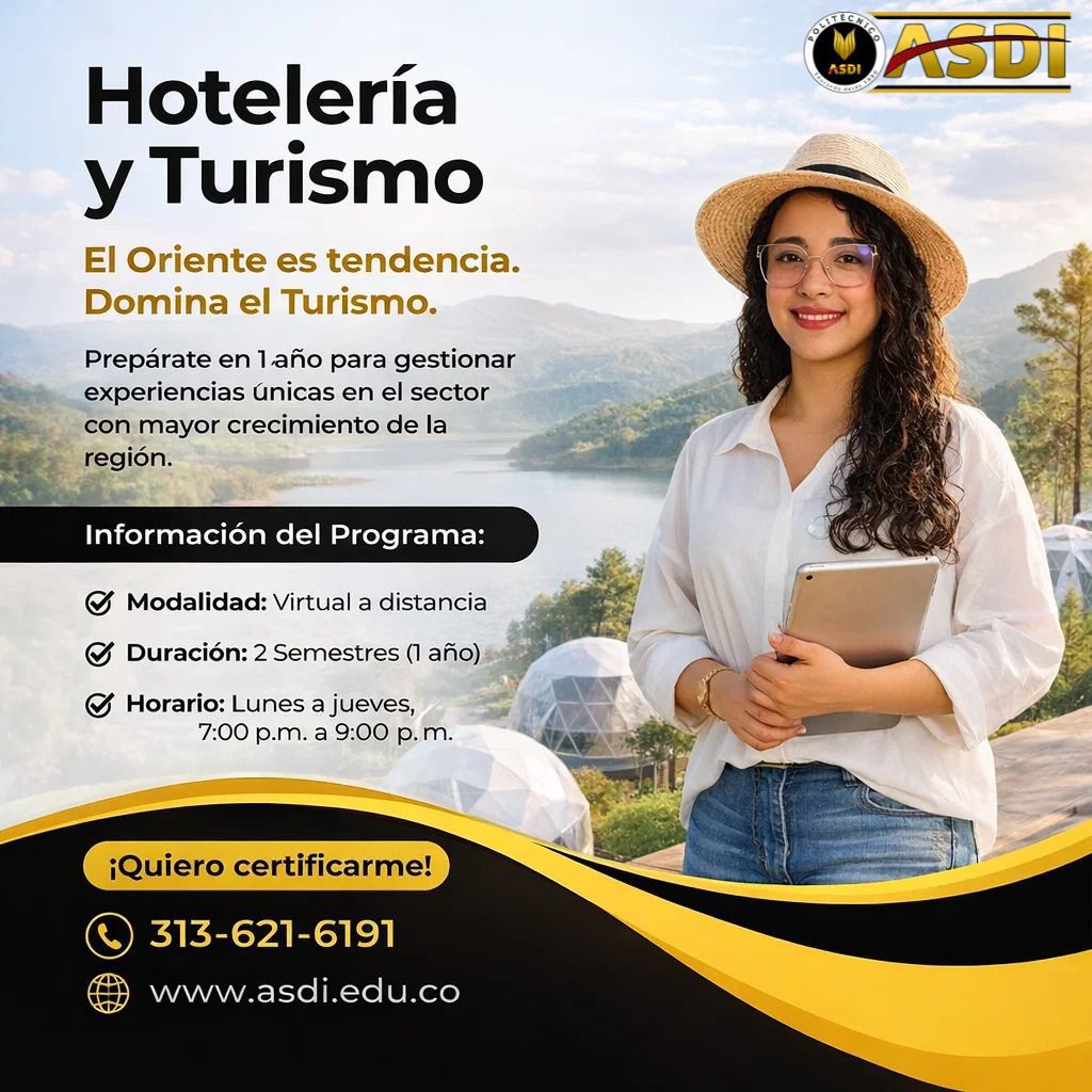 | Conocimientos académicos en Estrategias de Hotelería y Turismo | 768 | 2 semestres | Encuentros sincrónicos virtuales Presenciales un sábado al mes | Distancia con estrategia de educación virtual | Las clases sincrónicas virtuales en la noche 7:00 pm Las clases quedan grabadas por si no puede asistir |