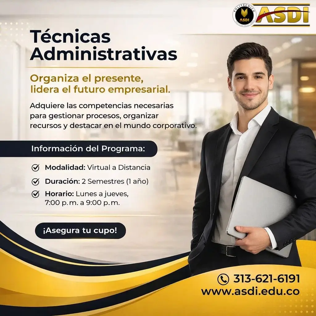 Los Conocimientos Académicos en Técnicas Administrativas te preparan para entender cómo funciona una empresa por dentro y cómo organizar sus procesos de manera eficiente. Aprendes a manejar tareas clave como archivo, atención al cliente, gestión de documentos y apoyo en procesos internos. No es solo teoría, es formación práctica para que puedas desempeñarte con seguridad en cualquier entorno laboral. Es una base ideal si quieres trabajar en áreas administrativas.